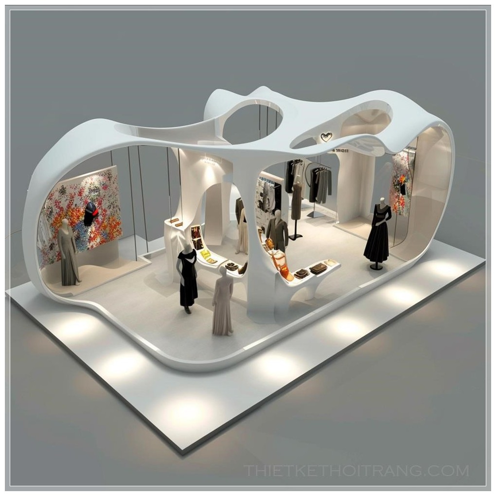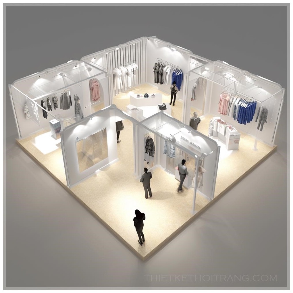 Thiết kế một triển lãm thời trang hình chữ nhật, ba mặt mở ra. Không gian triển lãm sẽ được chia thành ba khu vực khác nhau là trang phục nam, nữ và trẻ em. Mỗi khu vực sẽ chuyên về việc trưng bày các loại trang phục cụ thể.