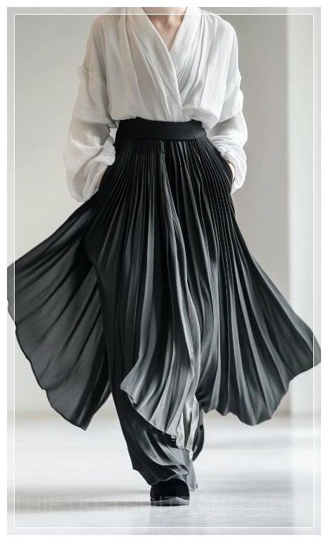 Một thiết kế thời trang mới nổi bật với nhiều nếp gấp tinh tế trong quần, mang đến sự phong phú và đa dạng cho trang phục. Những nếp gấp này không chỉ tạo nên chiều sâu mà còn làm tăng vẻ đẹp thời thượng, thanh lịch cho người mặc.